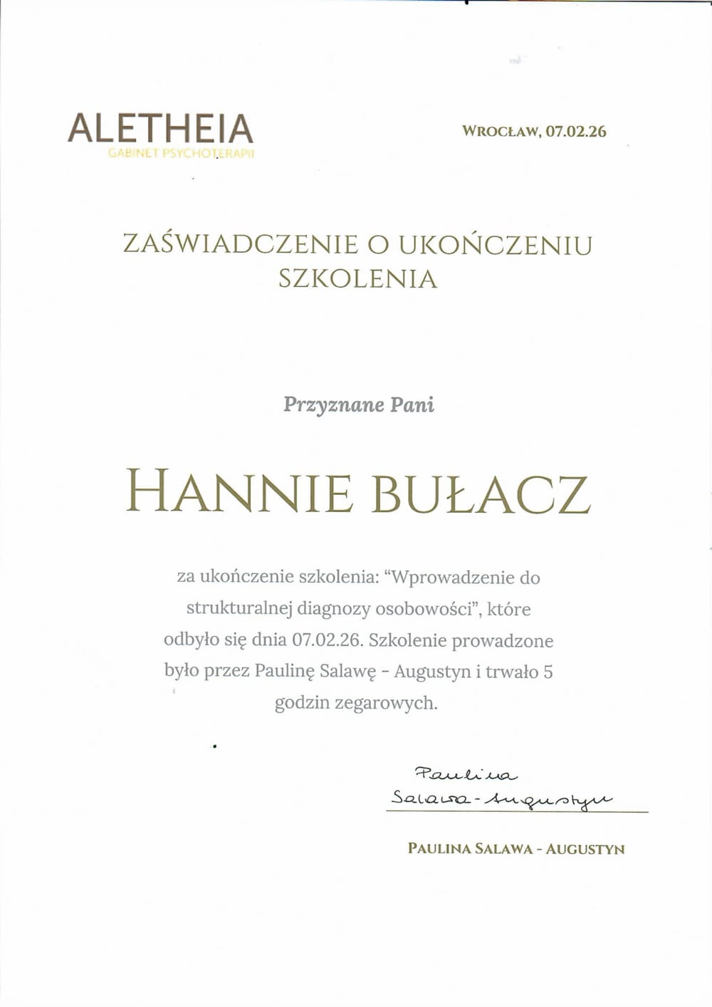 Pani Hanna Bułacz jest moim kolejnym terapeutą. Bardzo trudno mi nawiązać relacje. Jednak tym razem jest zupełnie inaczej. To właśnie u niej zdecydowałam się kontynuować moje spotkania.